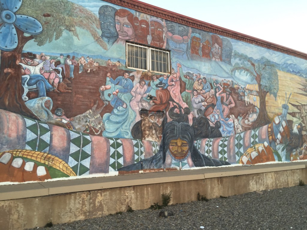 I’ve got an op-ed (written with my father) out in my hometown newspaper The Santa Fe New Mexican today on the necessity of preserving a mural that has a deeply primal hold on my subconscious. Something about it has always felt Jungian, the figures and forms looming large over flashes of my sun-baked southwestern childhood. There are a few photos beyond the jump. Read more about the controversy over its destruction here